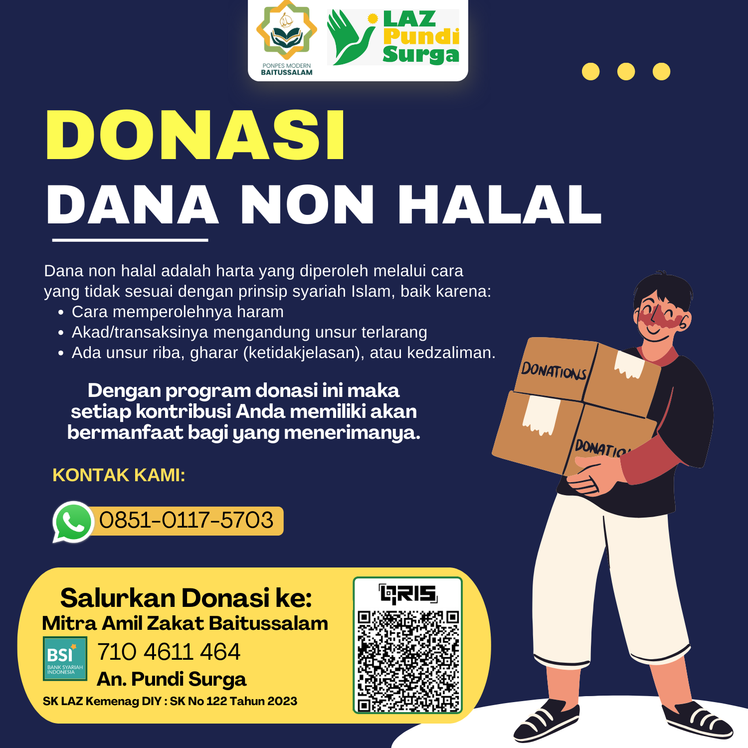 Mengelola zakat, infak, dan sedekah dari para donatur secara terpercaya.