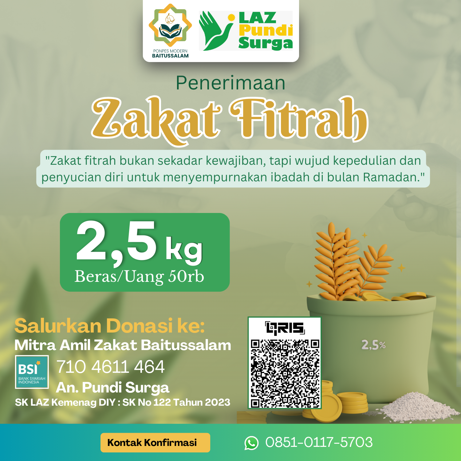 Kami berkomitmen mengelola dan menyalurkan zakat, infak, dan sedekah secara amanah, transparan, dan profesional, dengan laporan yang jelas serta program yang tepat sasaran sehingga setiap donasi benar-benar menghadirkan manfaat dan keberkahan yang nyata bagi umat.