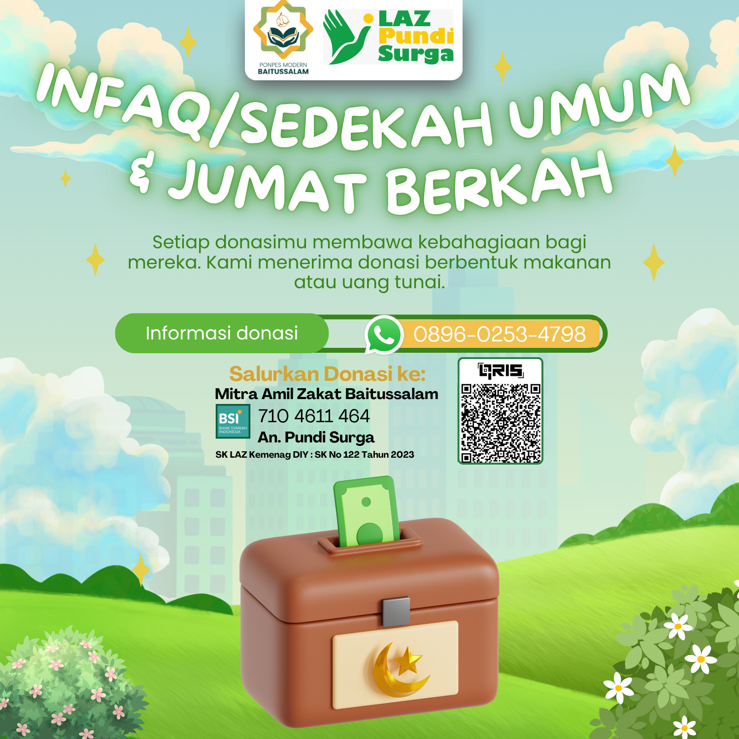 Dukung program kami melalui zakat, infak, sedekah demi keberkahan dan kesejahteraan umat.